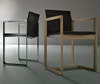 Poltroncina con struttura in alluminio lucido o verniciato oppure con struttura in noce o in frassino naturale o tinto nero. Rivestimento in cuoio con cuciture invisibili, calzato su una struttura interna in acciaio verniciato.
