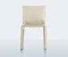 Cab in versione sedia oppure poltroncina con braccioli, è proposta in cuoio in una vastissima palette di colori. Fu concepita dall’architetto Mario Bellini, nel 1977, come prolungamento e protesi del corpo: uno scheletro in tubolare di acciaio e una pelle tesa in cuoio cucito, fermato alla struttura da quattro cerniere lampo.