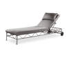 Lettino disponibile con struttura in ferro antracite curvato o in panna laccato opaco ed i cuscini in tessuto sono completamente sfoderabili.