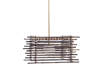 Lampada a sospensione in black bamboo, stelo in ottone grezzo, diffusore in vetro opalino. Lunghezza cavo 200 cm.