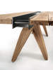 Tavolo con top realizzato in legno massello, a liste incollate e lati squadrati. Dotato di vano centrale in ferro con funzione contenitiva. A sorreggere il piano quattro possenti gambe a sezione geometrica.Dimensioni disponibili [cm]:- L.220 P.110 H.76,8- L.240 P.110 H.76,8- L.260 P.110 H.76,8