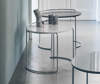 Tavolino con struttura in tondino di acciaio piegato e cromato, disponibile con piano ellittico in marmo Marquiña nero, marmo Carrara bianco oppure con piano laccato opaco o lucido in diversi colori.