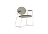 Sedia disegnata da Draga&Aurel per Baxter.Struttura in tondino di metallo da 1,2 cm, ½" ottonato satinato, brunito spazzolato a mano o nichelato satinato, con vernice opaca. Struttura seduta e schienale in multistrato di faggio, struttura braccioli in massello di faggio. Imbottitura in poliuretano espanso con rivestimento in fibra acrilica. Profilo decorativo nella medesima tonalità di cuoio.Dimensioni [cm]: L.66 P.57 H.87
