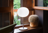 Lampada da tavolo a luce diffusa. Diffusore composto da un vetro opalino incamiciato, soffiato a bocca, con finitura esterna acidata e da una ghiera filettata in lega di alluminio pressofusa, con finitura galvanica, "cromatazione alodine". Base di acciaio ad alto spessore, stelo in tubolare d'acciaio e supporto diffusore in lega di alluminio pressofuso, tutti verniciati di colore grigio a liquido. Sul cavo è presente il dimmer elettronico che consente la regolazione a step dell'intensità luminosa.Dimensioni [cm]: Ø.24 H.60Tensione: 220-240VPeso: 6.7kgPotenza: 150WLunghezza cavo: 1900mm