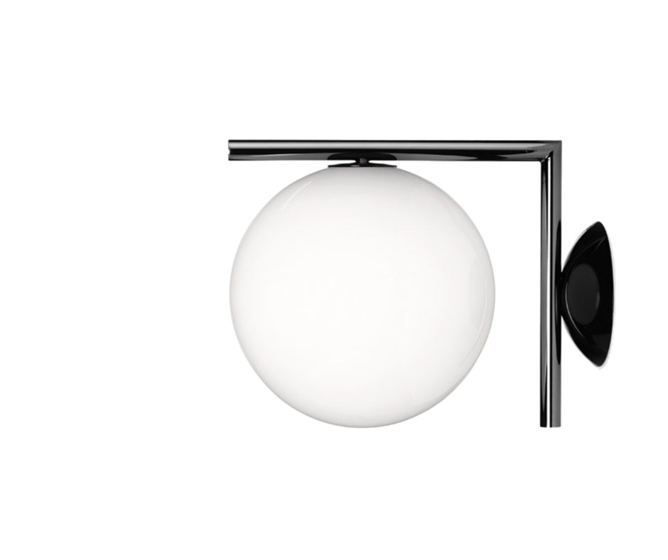 IC C/W appartiene ad una collezione di lampade da soffitto in bronzo, da parete, disegnata da Michael Anastassiades per Flos. Diffusore in vetro soffiato opalino e struttura in acciaio.La lampada verrà fornita in conformità ai requisiti di alimentazione e agli standard di cablaggio in vigore nel paese di spedizione.