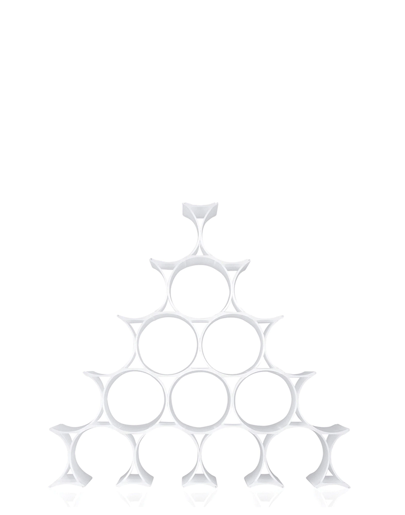 Gli elementi che formano il portabottiglie si possono agganciare tra loro per formare un numero indefinito di cerchi all’interno dei quali si possono riporre le bottiglie.