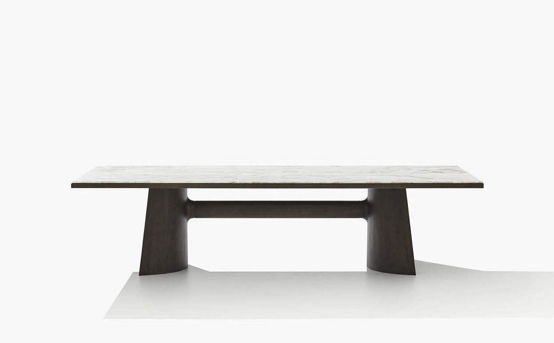 Il tavolo-scultura Kensington è caratterizzato dai moduli circolari della struttura, che sostengono un piano composto di elementi di forme e misure diverse. Rotondo o rettangolare, Kensington è un tavolo maestoso e suggestivo, un’opera d’arte per il living o l’ingresso, da personalizzare con finiture preziose.Dimensioni [cm]Tavolo rettangolare:L.260/300 P.120 H.74Tavolo rotondoØ.160 H.74Gambe: Fusione di alluminio laccato o verniciato spatolatoPiano: Pannello di tamburato con cornice in massello laccato - verniciato spatolatoInserto: Pannello di fibra a media densità impiallacciato o marmo
