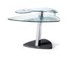 Scrivania con base e struttura in metallo verniciato alluminio. Piani in vetro sp. 15 mm temperato. E' possibile aggiugere come accessori un ripiano porta stampante in vetro ed un supporto tower in metallo.