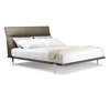 Uno stile rilassato e informale, una profonda sensazione di comfort e libertà. La testata è come un grande, soffice guanciale, impreziosito dalla semplice cucitura centrale e da un ricco bordo perimetrale. Il piano di riposo poggia su una struttura in metallo finemente rivestita in cuoio o pelle, come le sedute del divano. Anche qui i piedi sono arretrati rispetto agli angoli e, ancora più alti che nel divano, accrescono la percezione che i volumi siano sospesi, aerei.