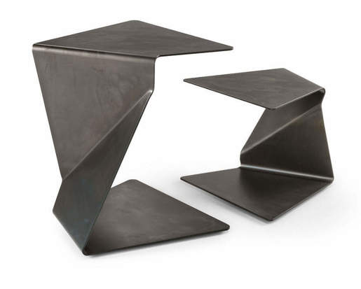 Tavolino in vetro curvato di spessore 12 mm per la versione in vetro trasparente ed extralight e di 10 mm per la versione Nero95. Disponibile anche nella versione metallo nuvolato.