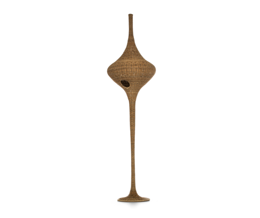 Lampada da terra in midollino naturale mélange, completa di cablaggio, interruttore e lampadina, disponibile anche in midollino laccato bianco opaco, grigio, avio, nero.