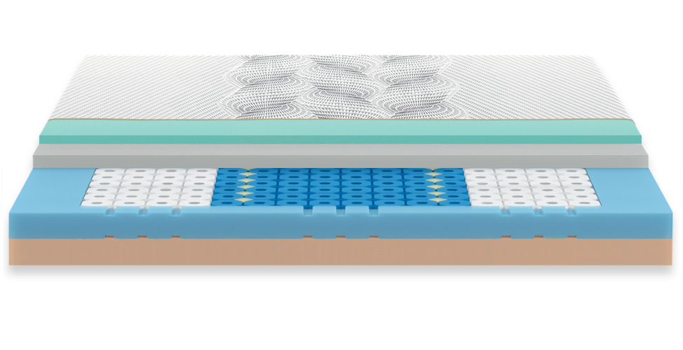 DIMENSIONI [cm]: 160x200 H.24STRATI:1 Strato automodellante in Natur Memory 7 cm2 Sistema combinato di aerazione Tubes a portanza differenziata3 Fascia perimetrale ad alta reattività 8 cm4 Strato inferiore in Grand Soleil Trio Cell portanza medium 8,5 cmCOMFORT: medio - accoglienteRIVESTIMENTO: Vento ZF 10DENSITÀ: alta > 60 kg m³CONSIGLIATO FINO A: 120 kgRETE A MOTORE: SI
